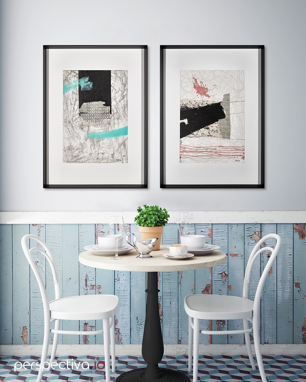 - Marco pirámide Blanco/Negro, lacado o poro abierto con cristal